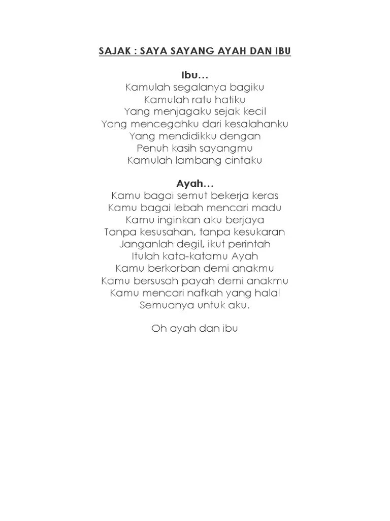 Sajak kasih sayang ibu bapa. Sajak kasih sayang ibu bapa. Sajak kasih sayang ibu dan ayah.